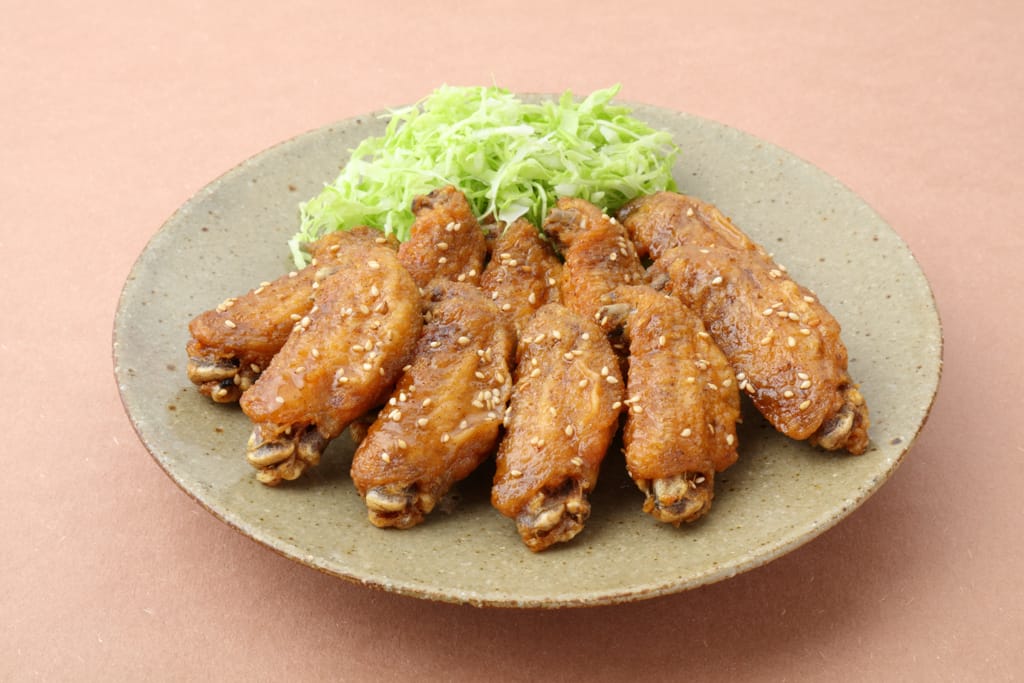 These crispy chicken wings are coated in a slightly spicy, sweet soy-based sauce and sprinkled with sesame seeds. Tebasaki is the ultimate Nagoya snack and pairs perfectly with beer or sake.