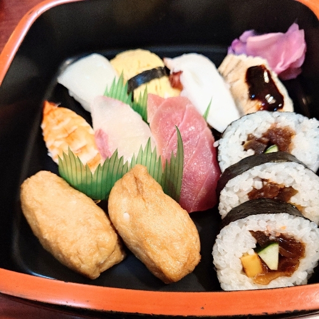 ランチは、寿司とそばorうどんのセットでボリューム満点。